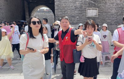 圖為“黨員示范崗”覃楓在賓陽樓開展志愿服務(wù)