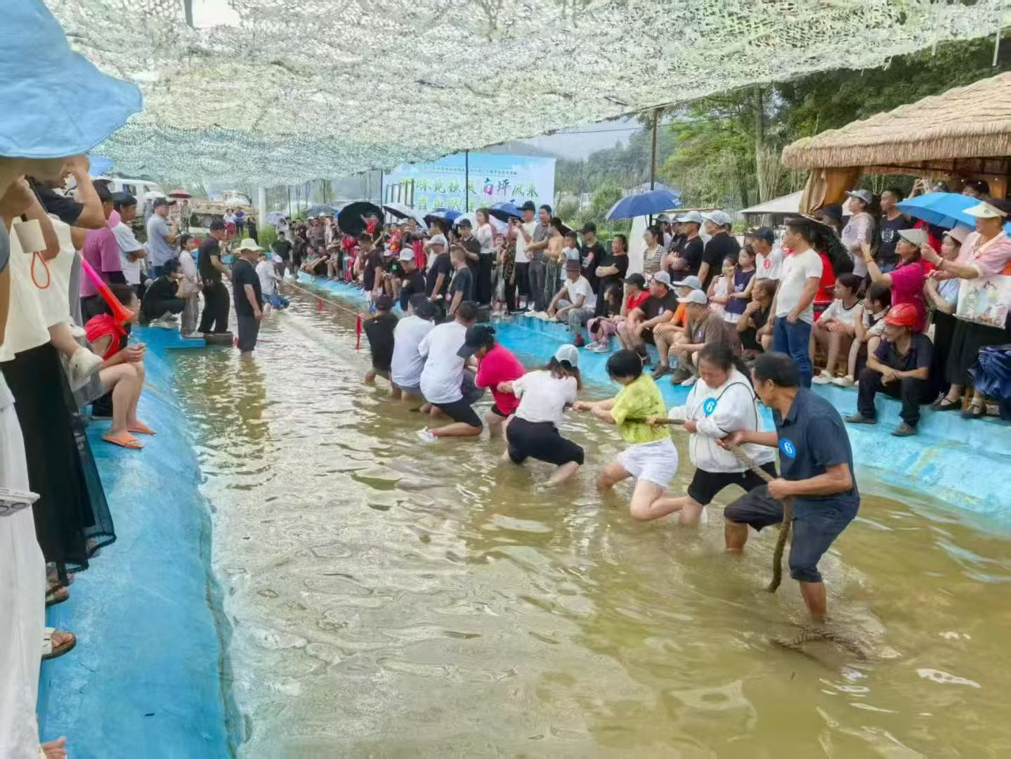 (水中拔河比賽現(xiàn)場)