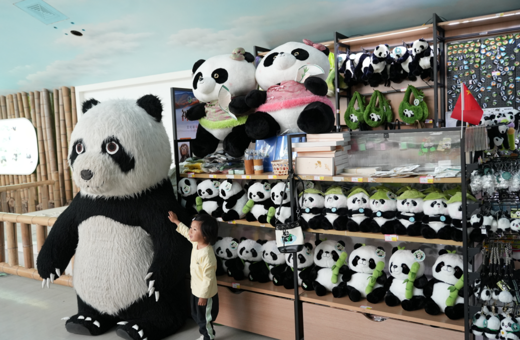 在熊貓館文創店,店長黃慶玉正在熱情向小朋友介紹熊貓玩偶、熊貓掛件等產品,在她的介紹下,一個個小朋友很快購買了鐘意的產品。同樣在養蜂人家的店長候利梅也使出渾身解數,耐心地為游客介紹金絲猴玩偶價格、展示藍面金絲猴的獨特之處,生動精彩地介紹瞬間收獲了一批“粉絲”下單。